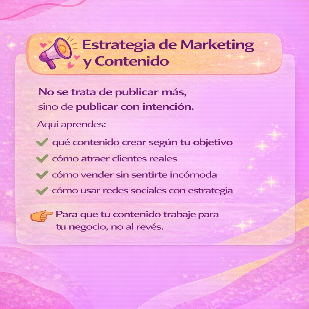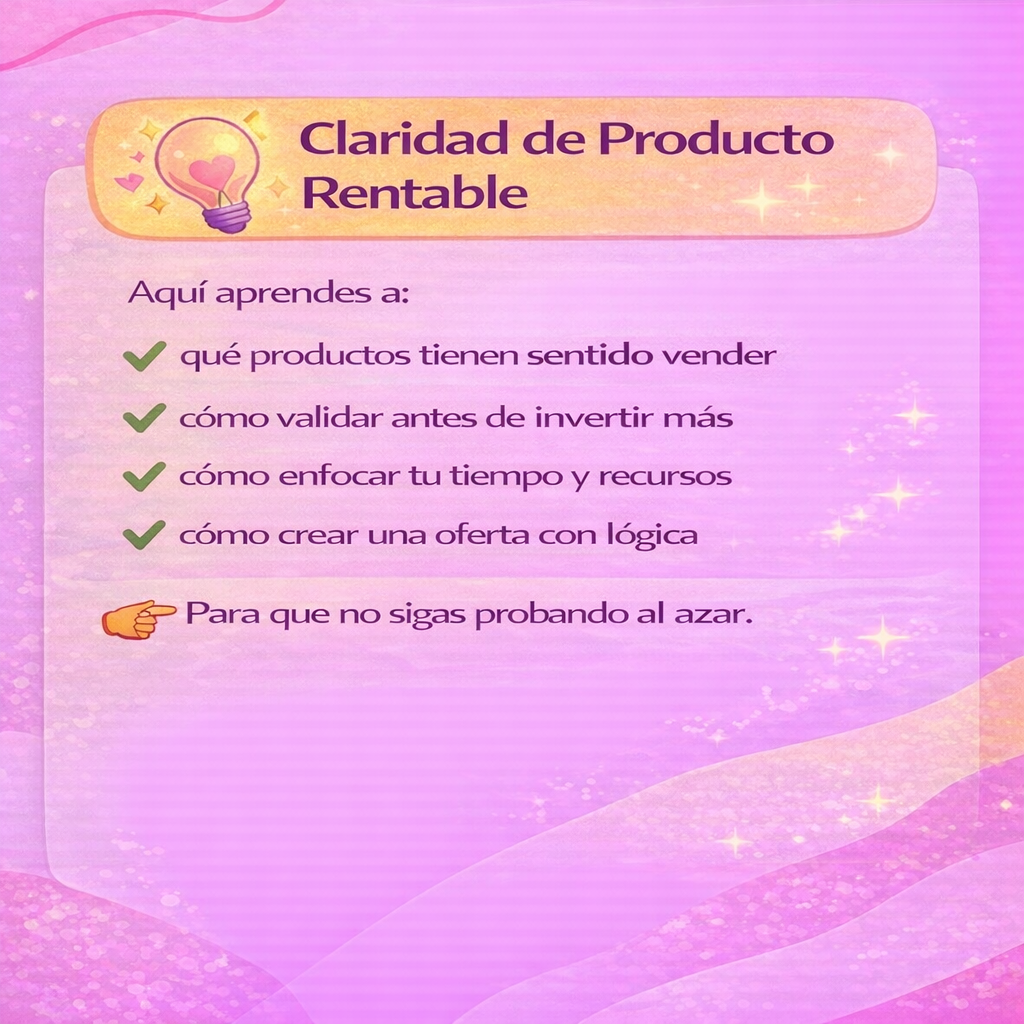 Acompaño a mujeres creativas a convertir su talento en un negocio rentable, con estrategia, estructura y acompañamiento real.